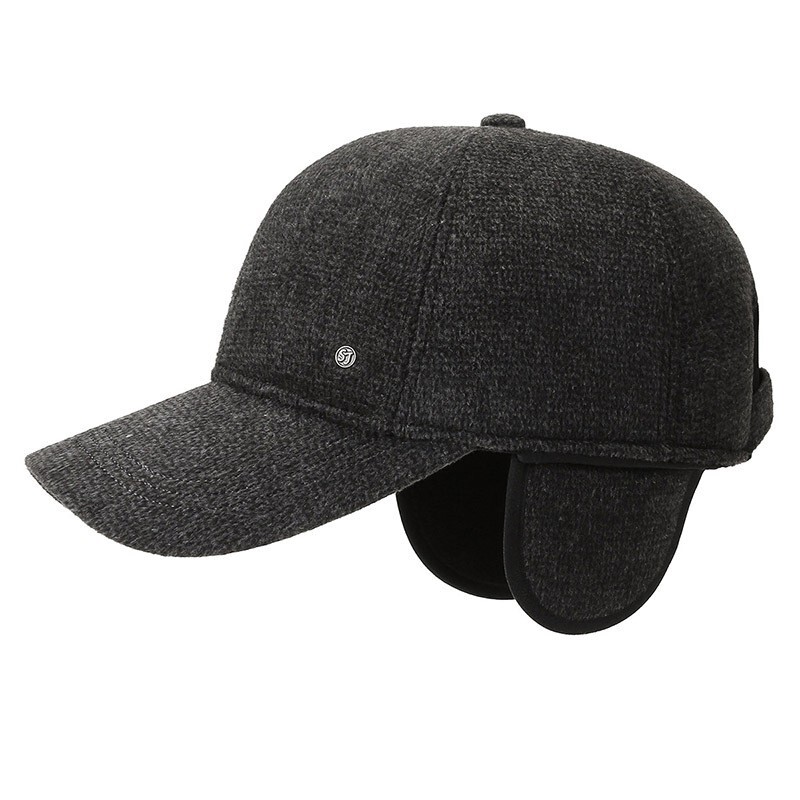 Фото - Сіра бейсболка на зиму від бренду Narason з вушками - Men box