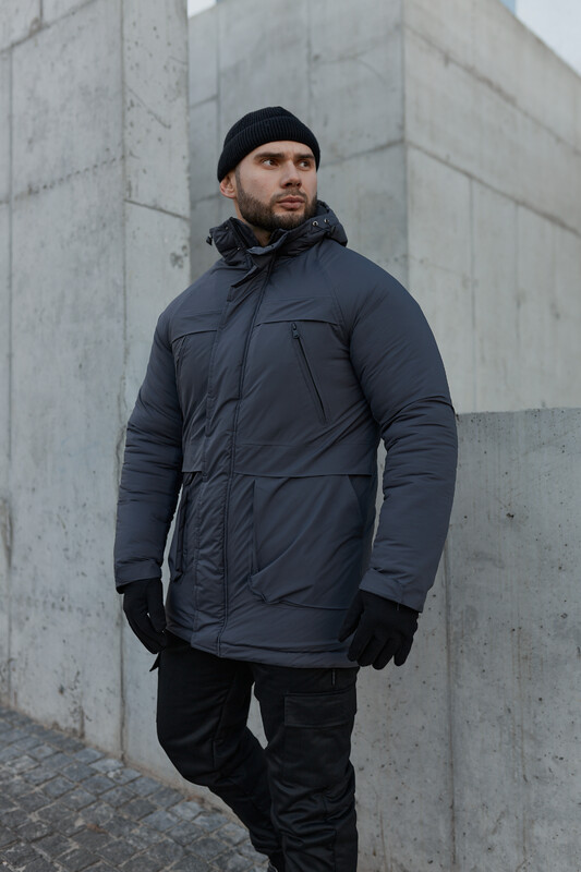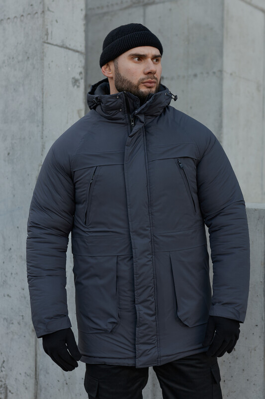 Чоловіча темно-сіра куртка Pobedov Legas подовжена