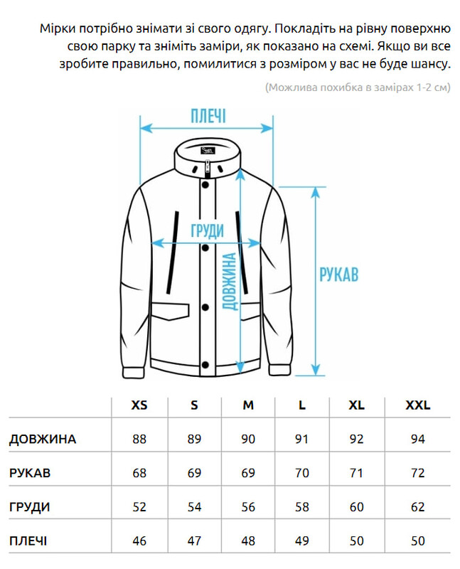 Зимова парка має високий ступінь теплоізоляції, добре тримає форму і відштовхує вологу. Велика тракторна блискавка зі зручним замком дозволяє легко розстебнути річ, а манжети на резинці з кнопками надійно прилягають до рук. Спереду та ззаду є рефлективні вставки для безпечного пересування у темну пору доби.