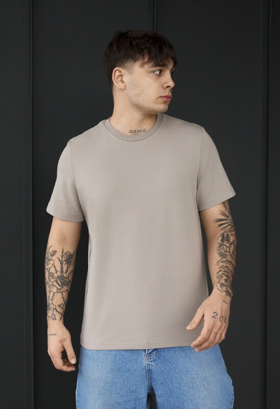 Темно-бежева футболка з 95% бавовни та 5% лайкри — ідеальна база для щоденного гардероба у будь-який сезон. М’яка, дихаюча та еластична тканина забезпечує максимальний комфорт і зберігає форму після прання. Класичний крій створює зручну посадку та підходить для будь-якого стилю — від casual до streetwear. Круглий виріз додає універсальності, а фірмова бірка у боковому шві підкреслює якість і оригінальність виробу.