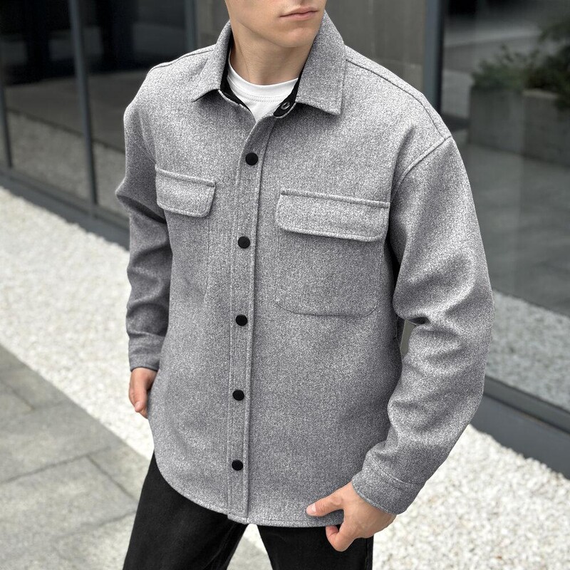 • Чоловіче пальто-сорочка Pobedov Mars світло-сіре