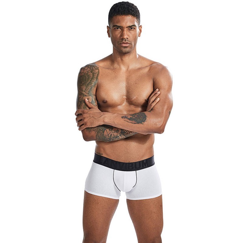 Представляємо стильні чоловічі боксери Lanvibum у класичному білому кольорі з контрастною чорною резинкою. Ці однотонні боксери — ідеальний вибір для чоловіків, які цінують комфорт, мінімалізм та чудову якість повсякденної білизни. Виготовлені з високоякісної бавовни з додаванням еластану, вони забезпечують м'якість, повітропроникність та відмінну еластичність, гарантуючи ідеальну посадку по фігурі та свободу рухів. Середня посадка робить їх універсальними та комфортними для носіння під будь-яким одягом. Боксери Lanvibum не вигорають і не линяють під час прання, що забезпечує довговічність кольору та первісний вигляд. Відмінна фабрична якість від китайського бренду Lanvibum гарантує надійність та зручність на кожен день.