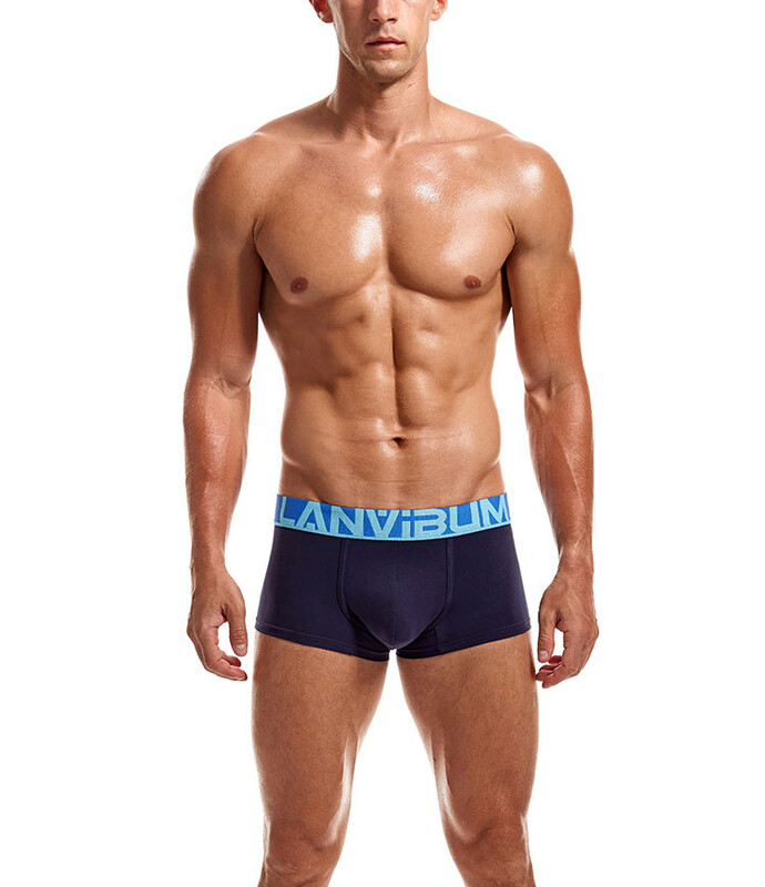 Фото - Чоловічі бавовняні боксери Lanvibum однотонні. Колір: темно-синій - Men box