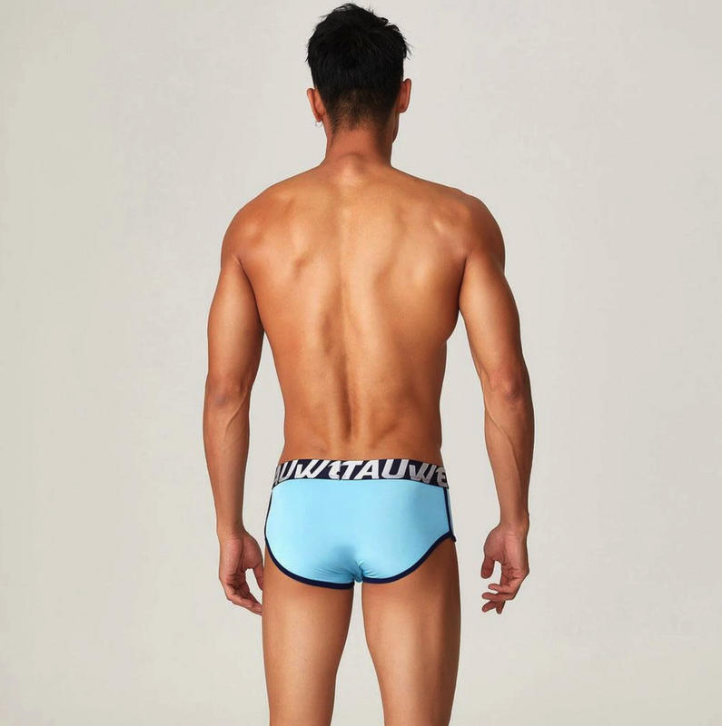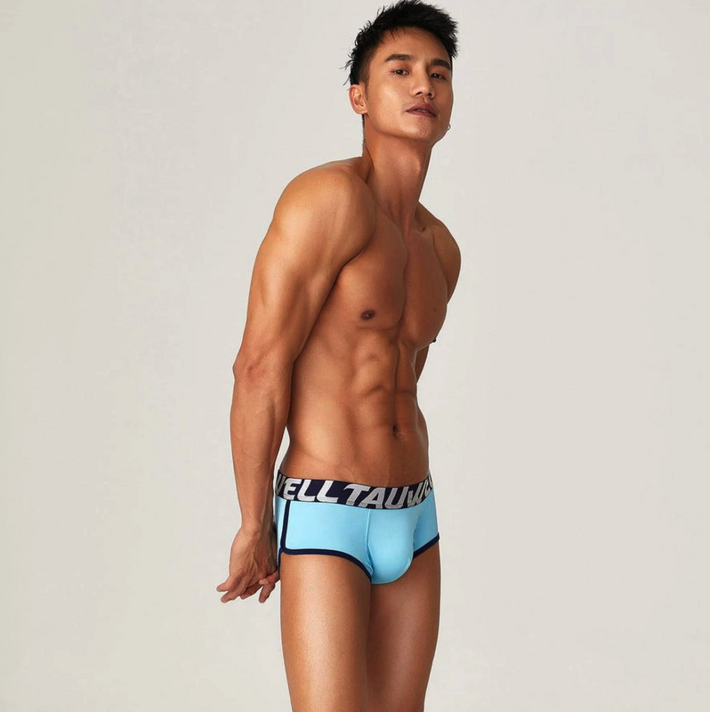 • Чоловічі боксерки Tauwell блакитного кольору з широкою чорною резинкою, облягаюча посадка