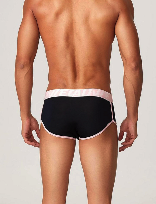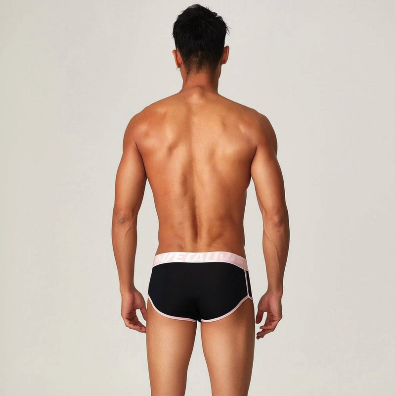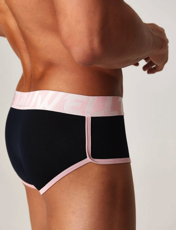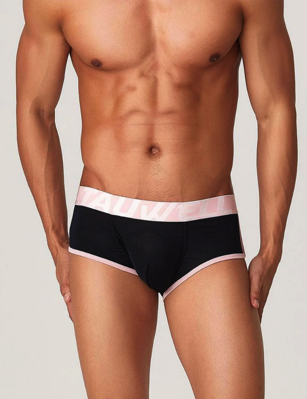 • Чоловічі боксерки Tauwell чорного кольору з широкою рожевою резинкою, облягаюча посадка