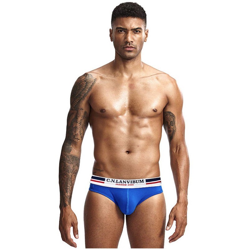 • Чоловічі повсякденні труси бріфи Lanvibum сині з кольоровою резинкою