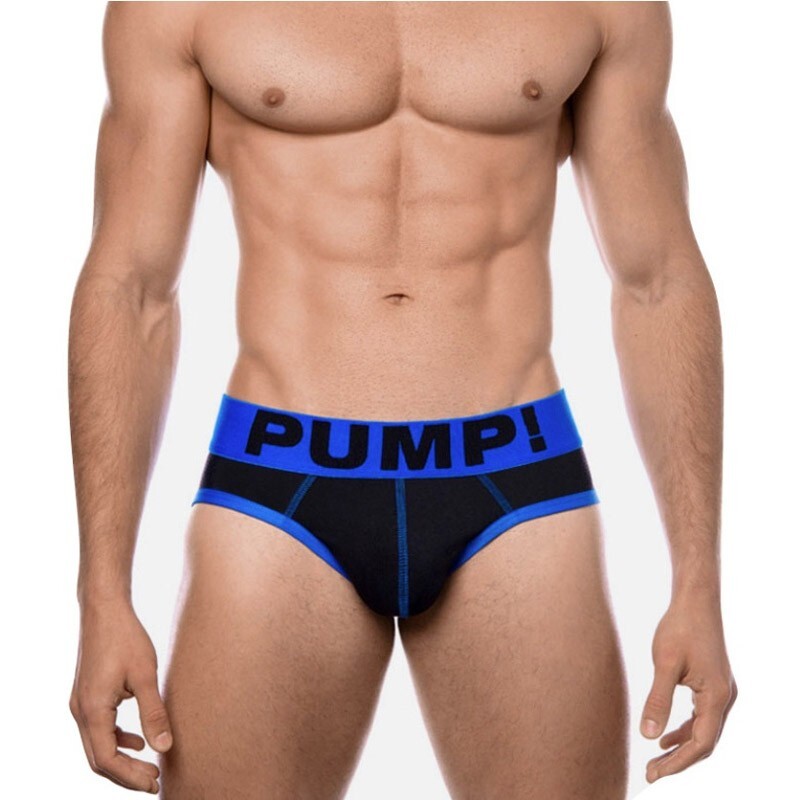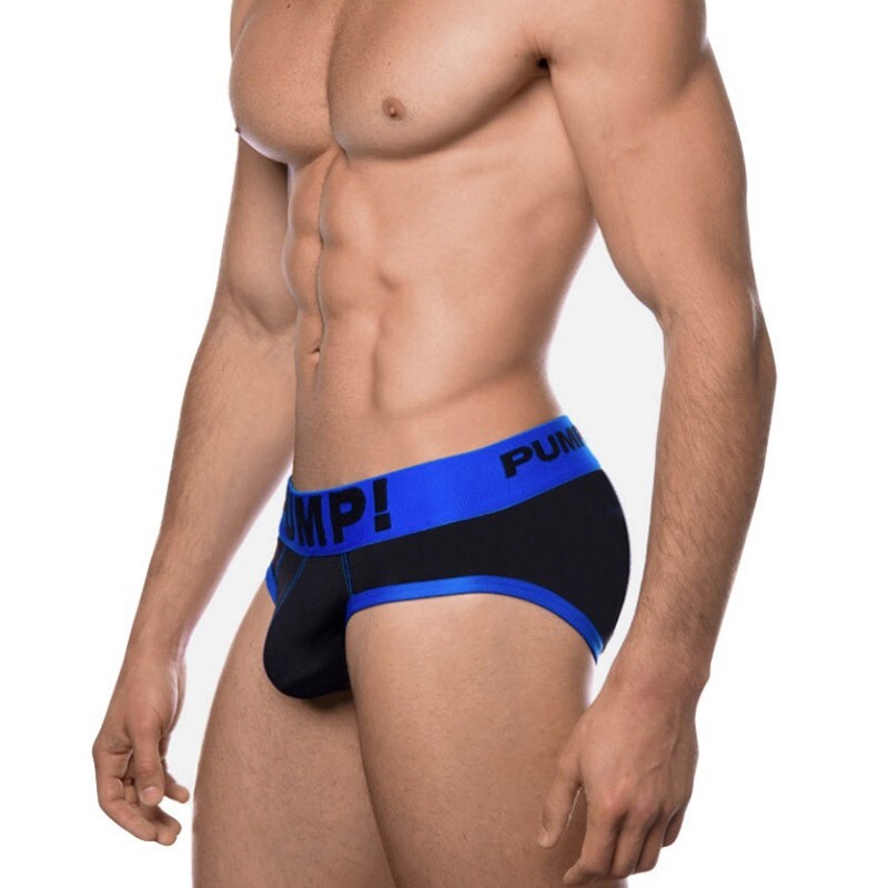 • Чоловічі повсякденні труси бріфи PUMP чорного кольору з синьою гумкою