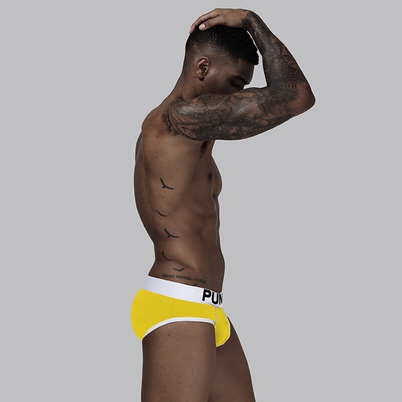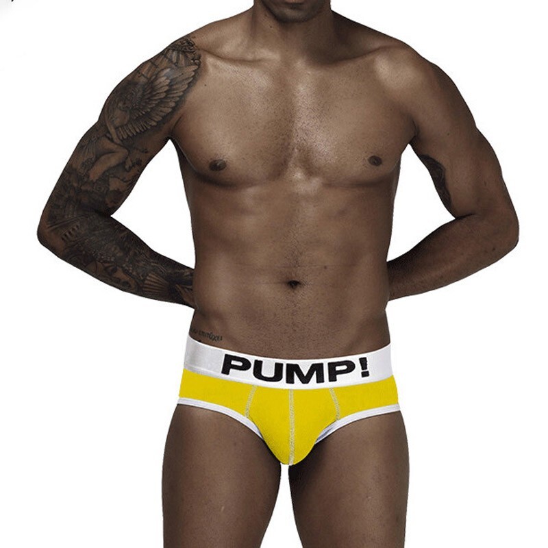• Чоловічі бавовняні труси бріфи PUMP жовтого кольору з білим кантом
