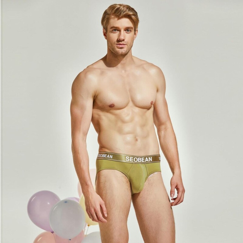 Фото - Чоловічі бріфи Seobean оливкового кольору з атласною резинкою - Men box