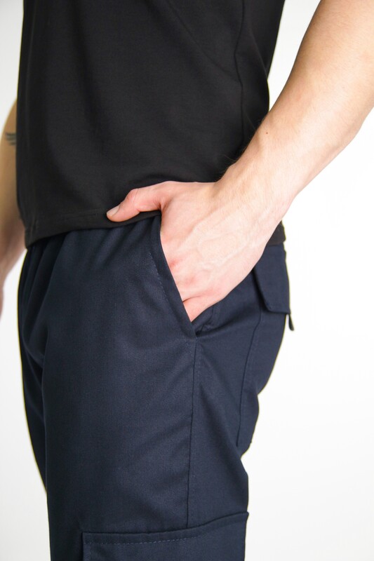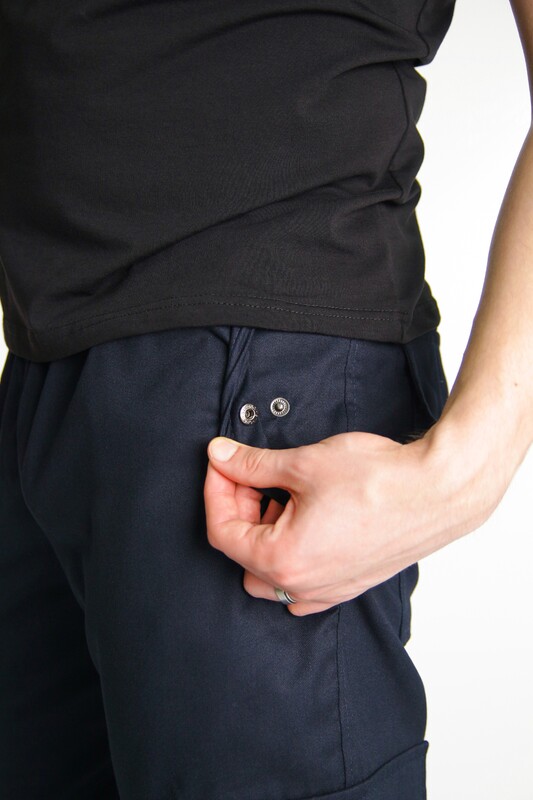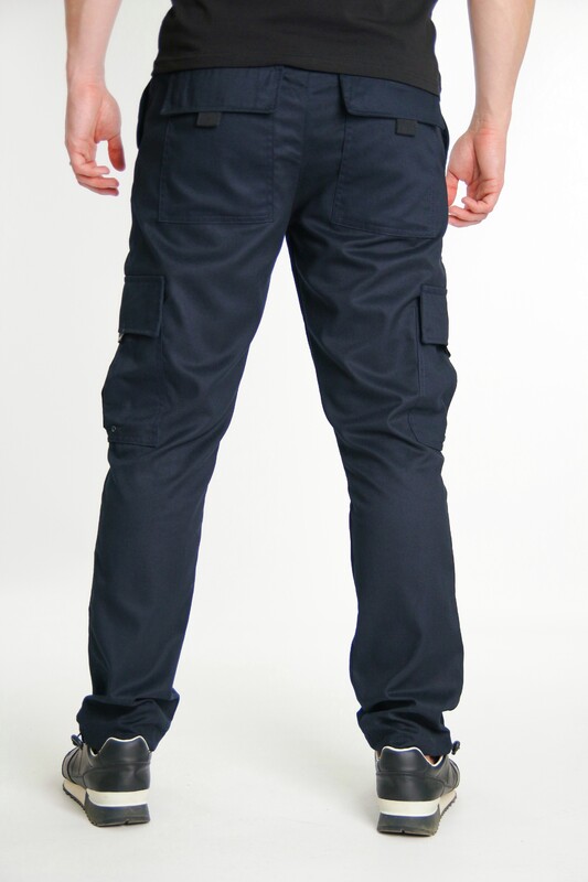 Знизу штани регулюється еластичним шнурком із фіксатором. Всі кишені на кнопках.