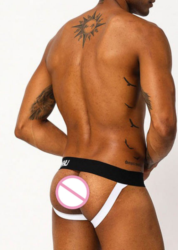 Сексуальні труси для чоловіків D.M чорно-білі стрінги з ерекційним кільцем