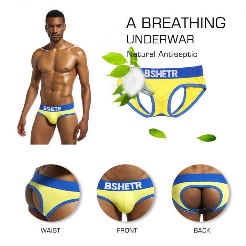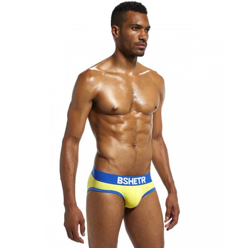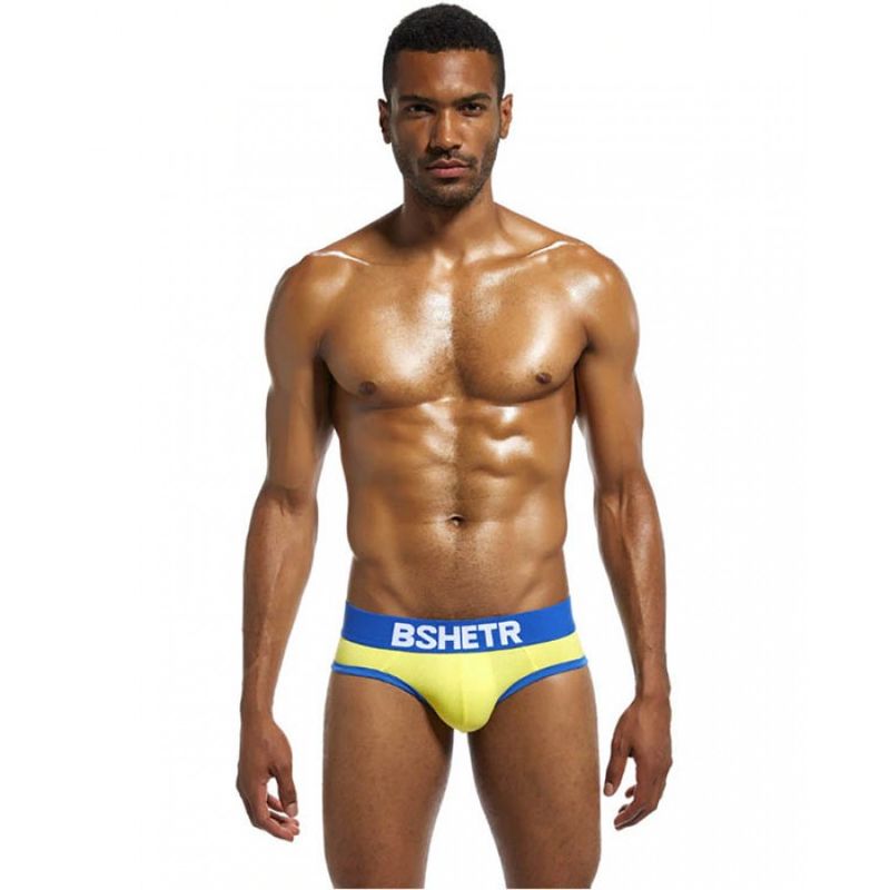 • Чоловічі еротичні джоки Bshetr жовті з синьою гумкою