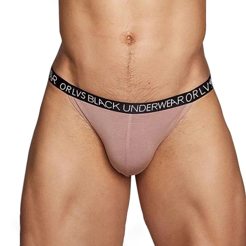 • Чоловічі еротичні труси джоки ORLVS бежевого кольору з чорними резинками