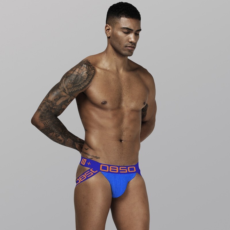 • Еротичні труси чоловічі джоки від бренду 0850 синього кольору в рубчик