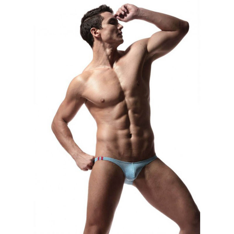 Фото - Чоловічі бавовняні труси-сліпи Lanvibum сині з широкою резинкою - Men box