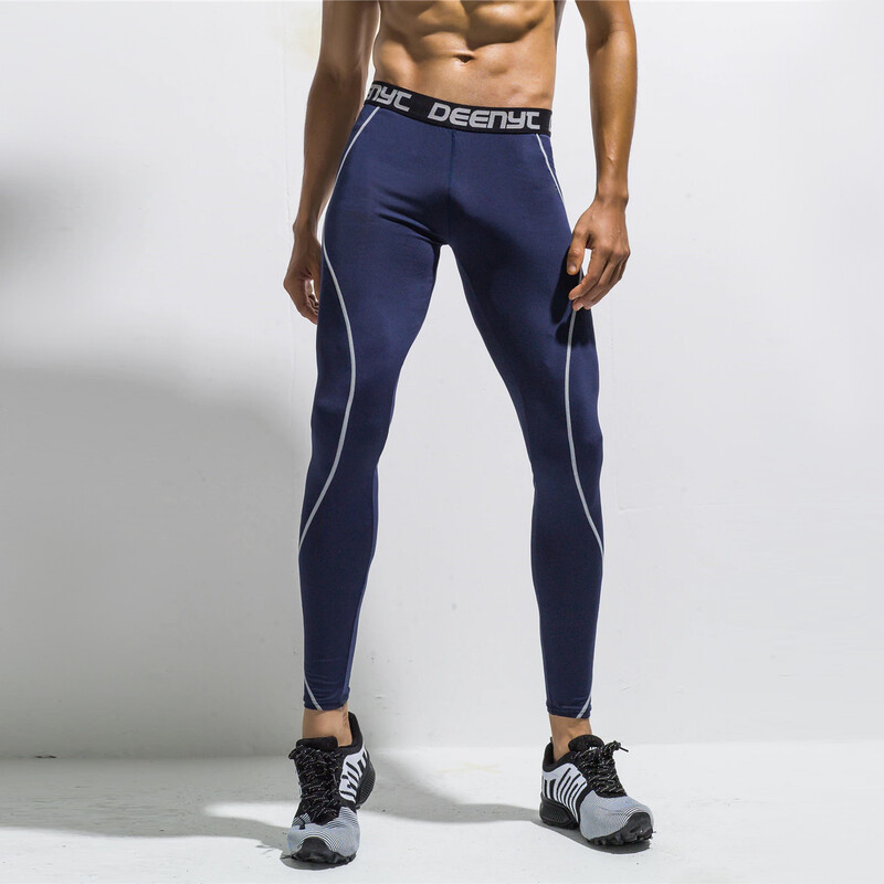 Фото - Легінси для бігу Deenyt темно-сині з сірими швами - Men box