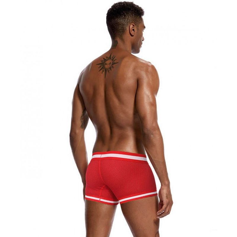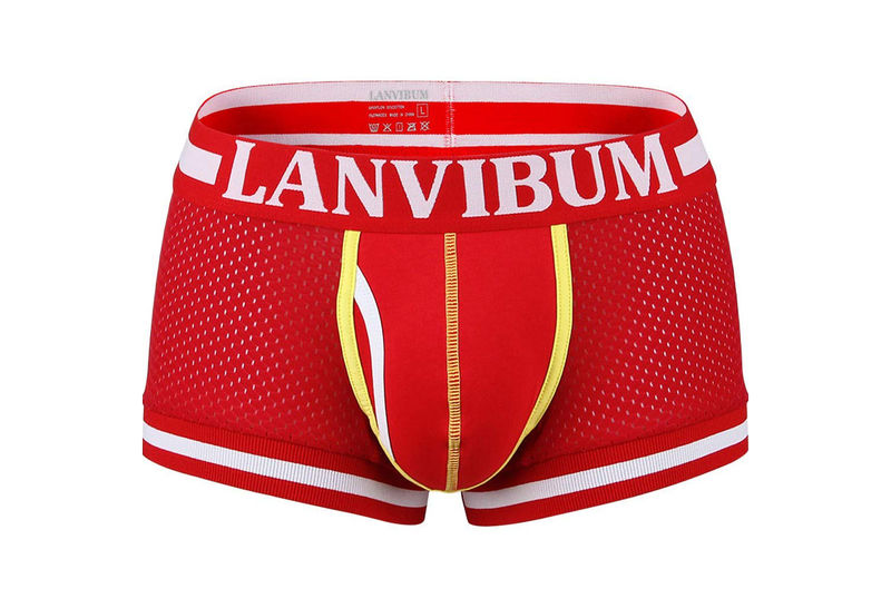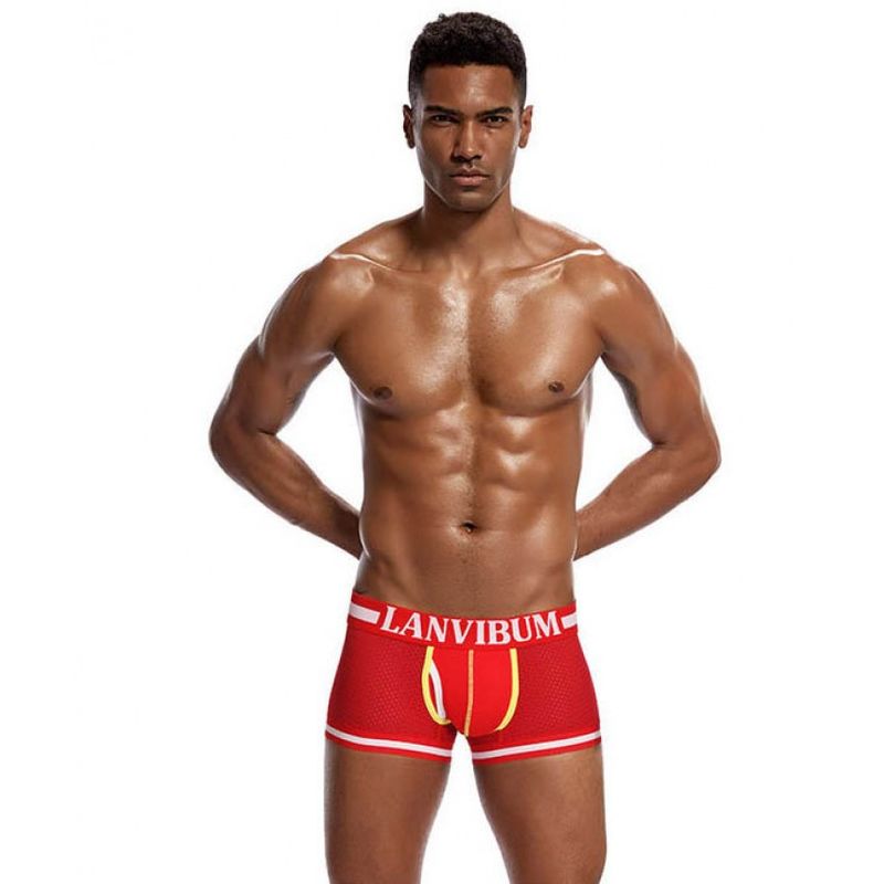 Чоловічі нейлонові труси LanviBum спеціально створені для спекотної літньої погоди. Вентильована сітка забезпечує прохолоду та сухість протягом усього дня. Ця модель ідеально підійде для занять в тренажерному залі, бігу або інших фізичних навантажень. Білизна виготовлена з нейлону з дрібною сіткою, в той час як зона гульфика зроблена з бавовни з подвійною підкладкою. Обтягуючі гумки на талії та ногах, червоно-білий дизайн і широкий 40-ка міліметровий пояс підкреслять і без того ідеальну фігуру.