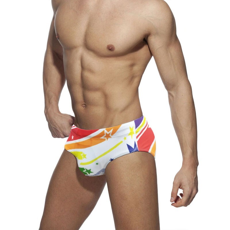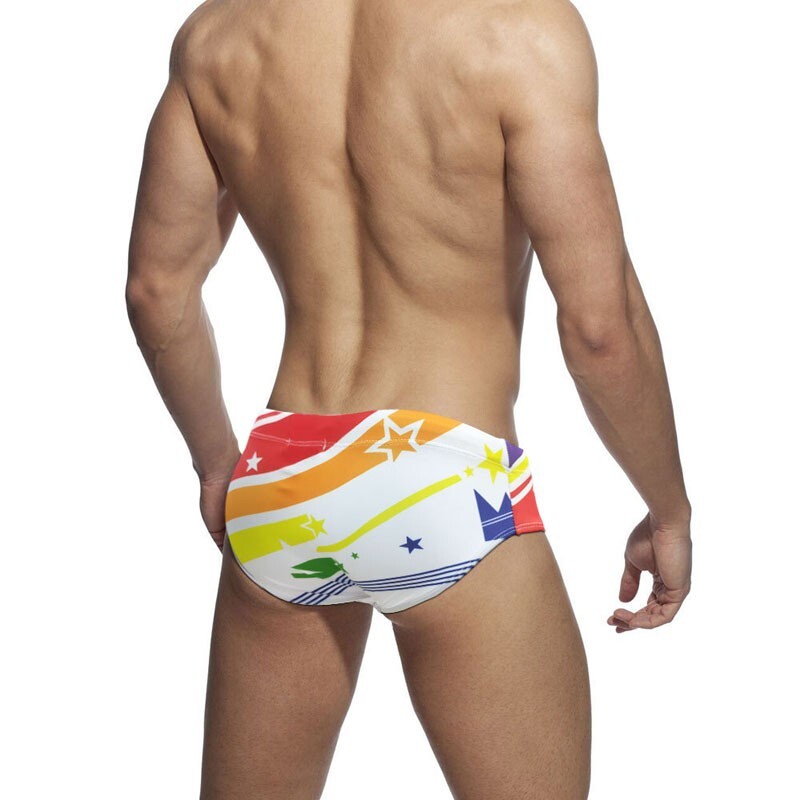 • Чоловічі плавки бріфи UXH білі з різнокольоровим принтом