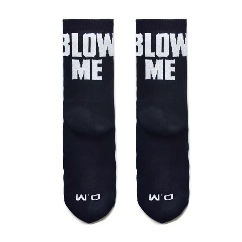 Стильні та зручні чоловічі спортивні шкарпетки D.M. "BLOW ME Gay" у чорному кольорі — ідеальний вибір для активного способу життя. Напис на халяві яскраво підкреслює вашу індивідуальність та сміливість. Виготовлені з високоякісного матеріалу (70% бавовна, 30% еластан), ці шкарпетки забезпечують відмінну повітропроникність та комфорт на весь день. Потовщена махрова підошва створює додаткову амортизацію, знижуючи навантаження на стопу під час тренувань і тривалих прогулянок. Шкарпетки добре вбирають піт і підходять для носіння в будь-який сезон.