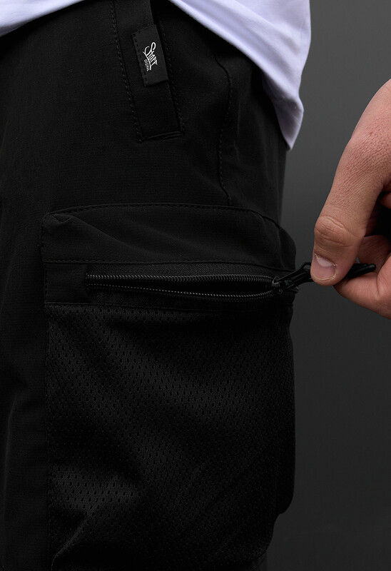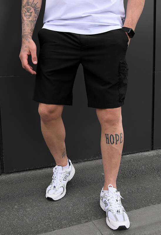 Шорти карго з поясом на фастексі чудово тримають форму та посадку, а сітчаста кишеня на блискавці з лівої сторони робить дану модель ексклюзивною та неповторною.