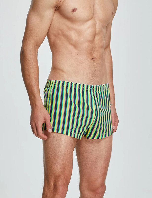 Сімейні труси Seobean середньої довжини з гульфиком виготовлені зі 100% натуральної бавовни та мають яскравий вертикальний принт у жовто-зелених і синіх відтінках. Класичний крій у форматі шортів забезпечує комфортну посадку й свободу рухів, а натуральна тканина приємна до тіла та добре пропускає повітря. Завдяки середній посадці труси підходять для щоденного носіння. Стильні смуги додають образу оригінальності, а еластичний пояс із логотипом Seobean гарантує надійність і сучасний вигляд.