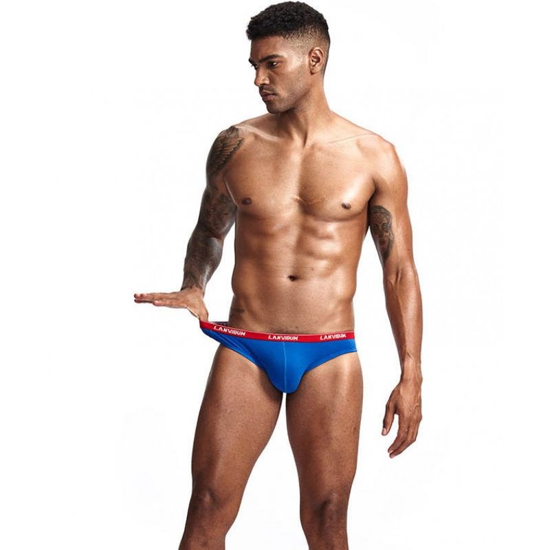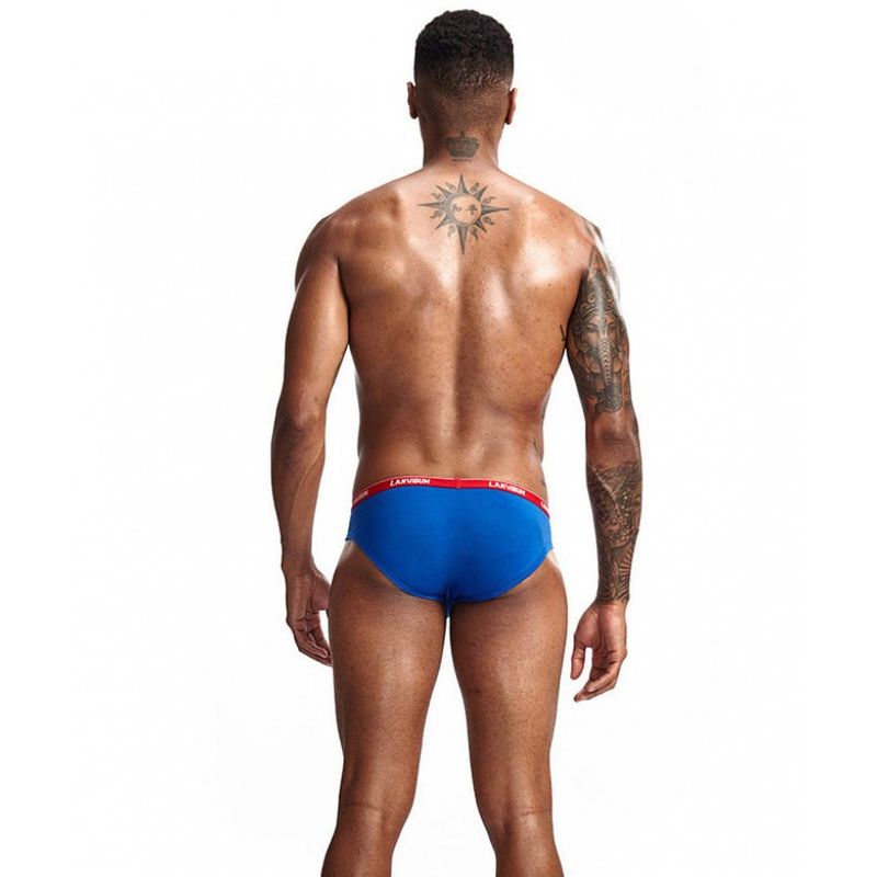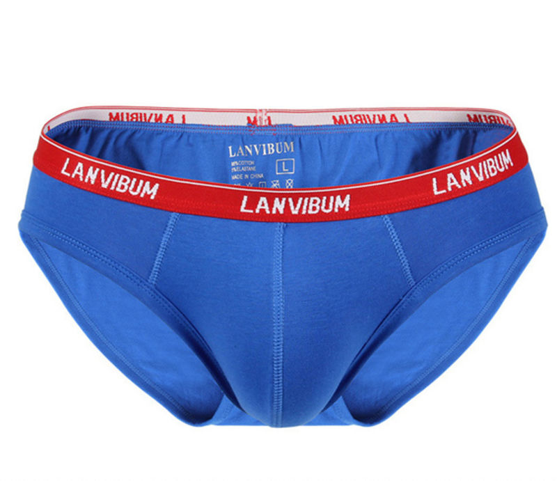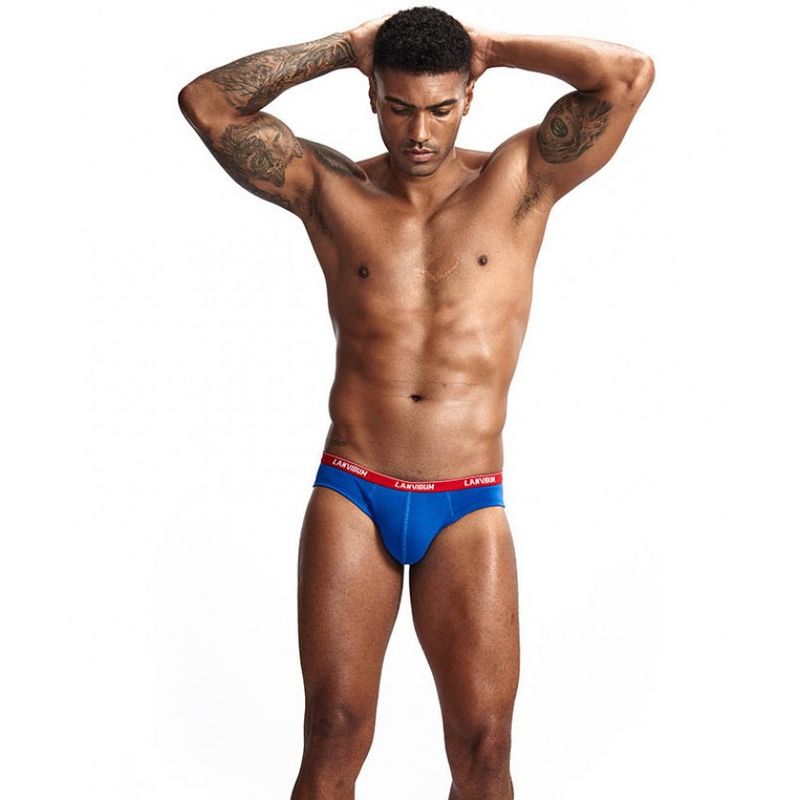 • Чоловічі бавовняні труси сліпи Lanvibum синього кольору з червоною гумкою