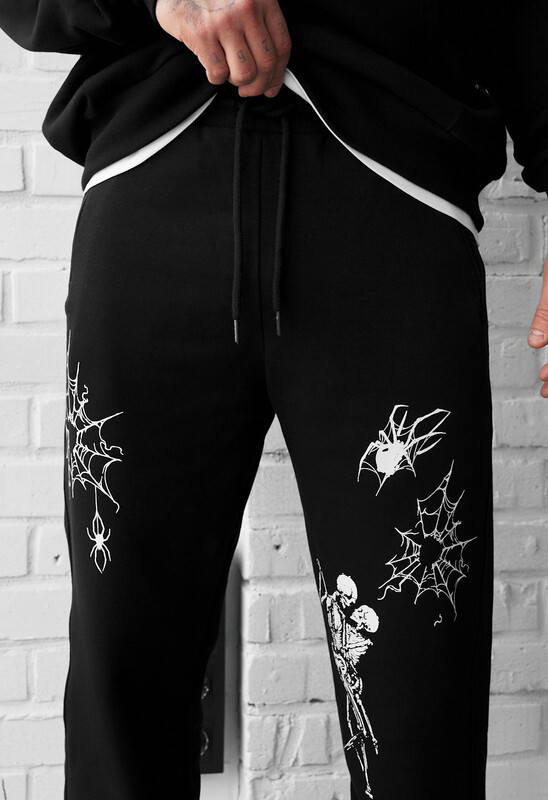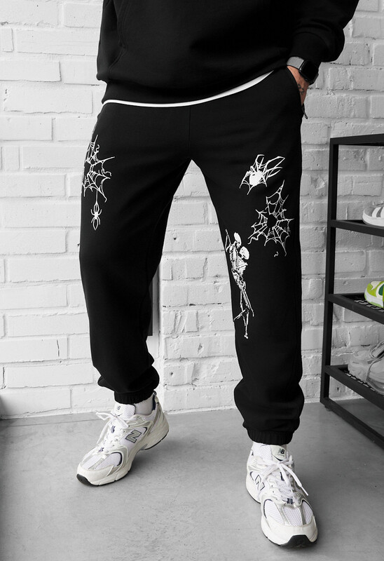 Стильні чоловічі спортивні штани Staff у чорному кольорі з оригінальним художнім принтом — ідеальний вибір для щоденного комфорту. Виготовлені зі 100% якісної європейської бавовни, забезпечують м’якість і довговічність. Еластичний пояс на шнурку гарантує зручну посадку, а манжети фіксують форму. Мають функціональні кишені на блискавці та задню накладну. Підходять для будь-якого сезону та легко комбінуються зі streetwear образами.