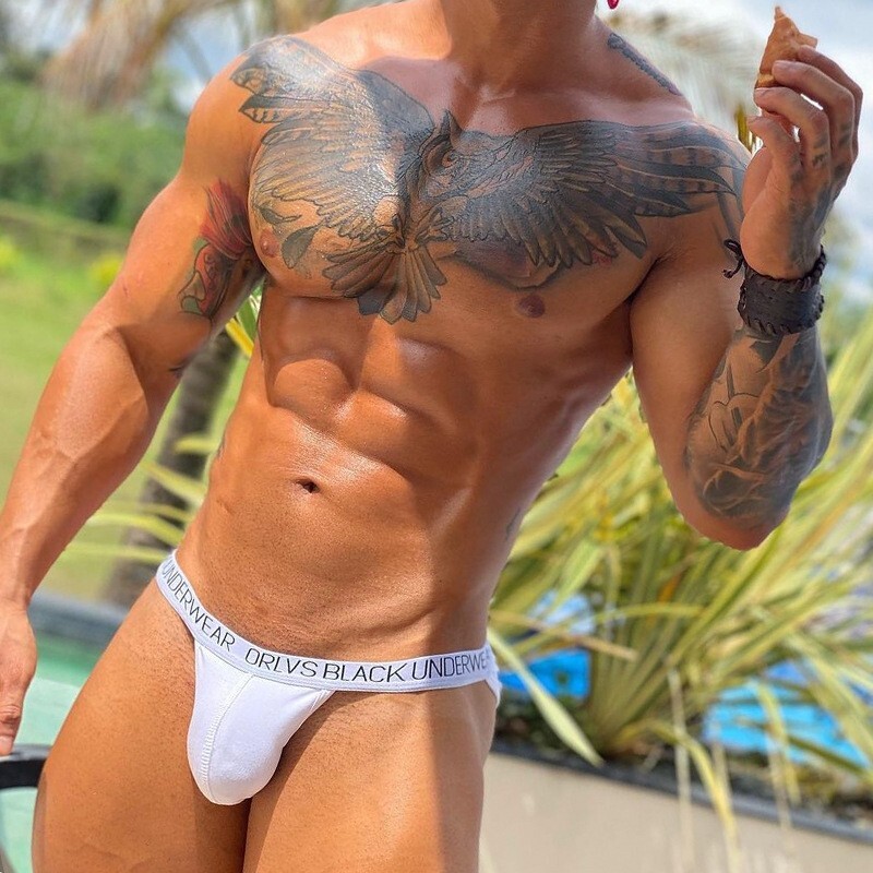 Чоловічі труси танга ORLVS білі з яскравою резинкою