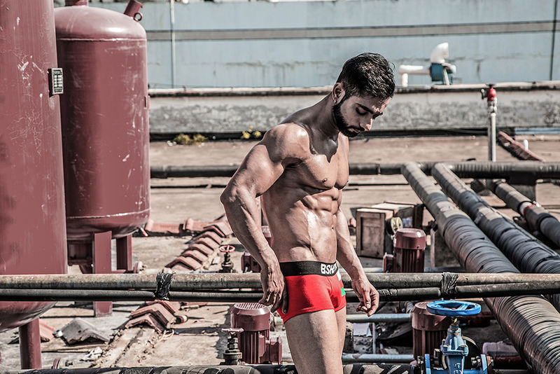 • Чоловічі боксери Bshetr червоного кольору з кольоровими вставками