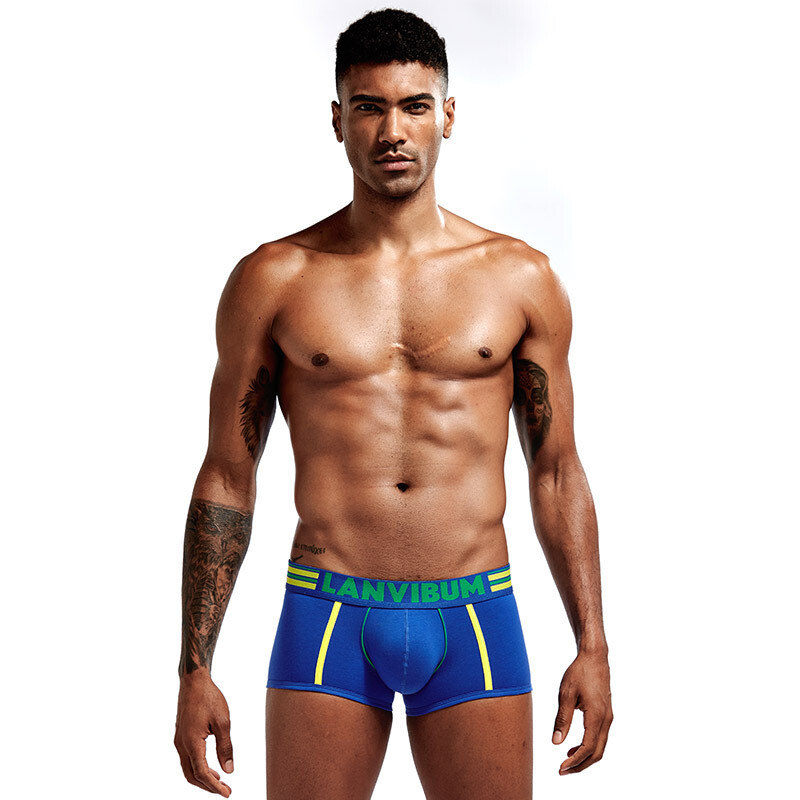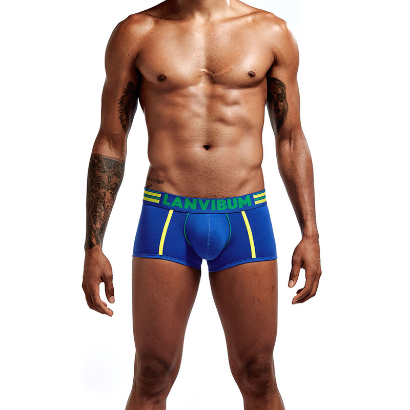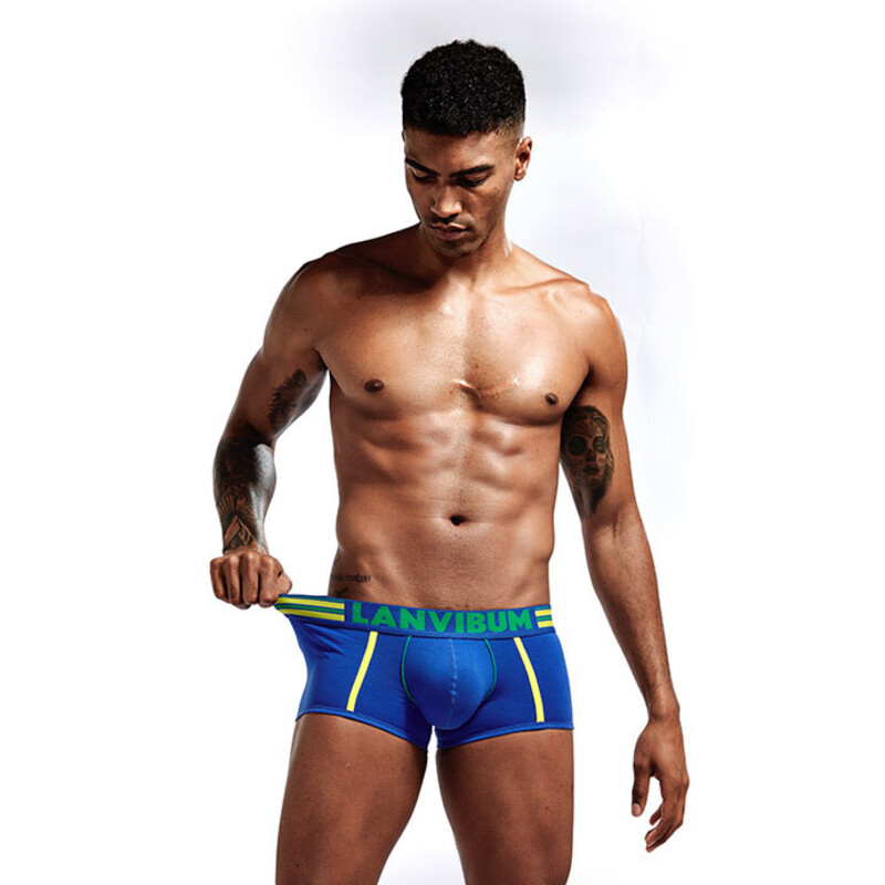 • Красиві чоловічі труси боксерки Lanvibum синього кольору бавовняні