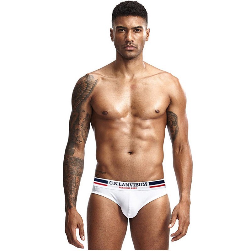• Чоловічі труси бавовняні бріфи Lanvibum облягаючі білого кольору