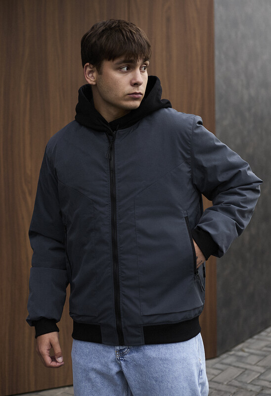 Класичний утеплений бомбер не сковує рухів і чудово поєднується із будь-яким типом одягу, а міцна тканина захищає від вітру та опадів. Модель доповнена великими накладними кишенями на блискавці.