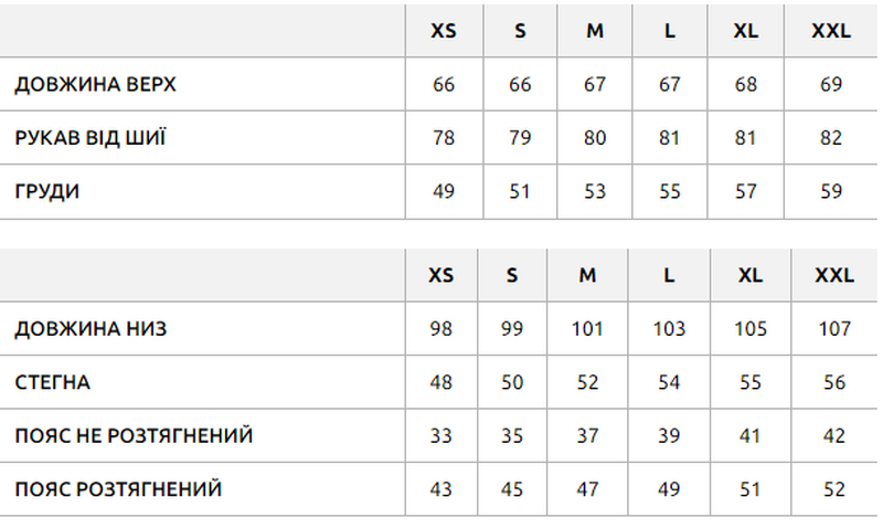 - знизу манжети з еластичною резинкою.