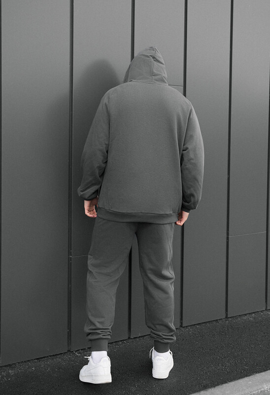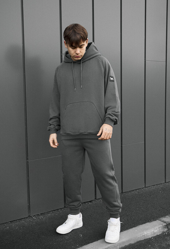 Стильний чоловічий спортивний костюм oversize у темно-сірому кольорі — ідеальний вибір для комфорту та сучасного міського стилю. Виготовлений зі 100% європейської бавовни, він забезпечує м’якість і дихаючі властивості. Худі з регульованим капюшоном і кишенею-кенгуру додає практичності, а штани з еластичним поясом і манжетами гарантують зручну посадку. Універсальний варіант для щоденного носіння у будь-яку пору року.