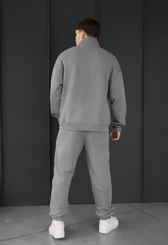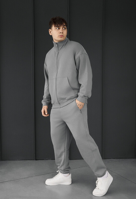 Сучасний чоловічий спортивний костюм oversize у сірому кольорі — поєднання комфорту та трендового стилю. Виконаний зі 100% європейської бавовни, він приємний до тіла та добре пропускає повітря. Кофта з високою горловиною та накладними кишенями додає практичності, а штани з еластичним поясом і манжетами забезпечують ідеальну посадку. Універсальний костюм для щоденного використання в будь-яку пору року.