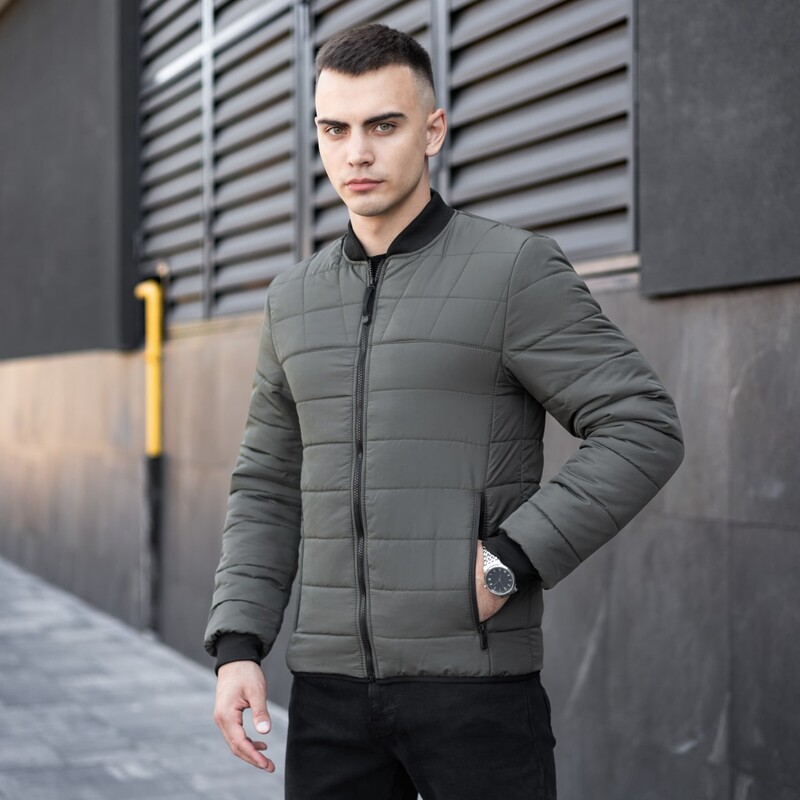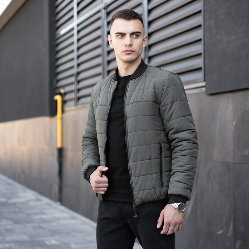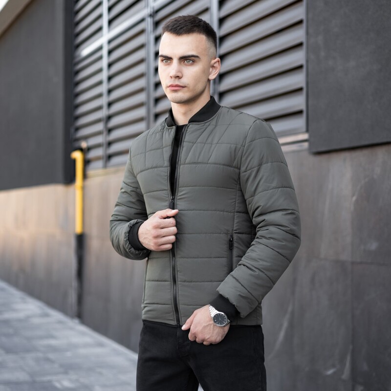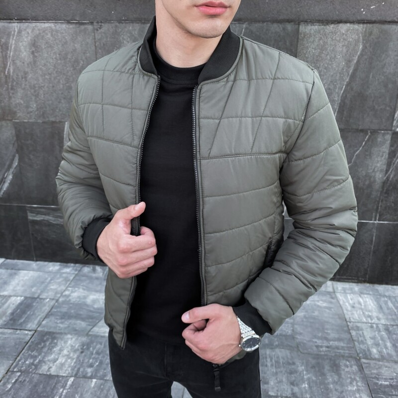 Фото - Чоловічий стьобаний бомбер Pobedov Povezlo кольору хакі - Men box