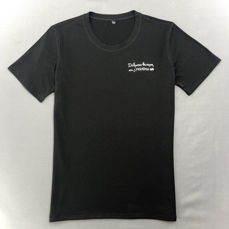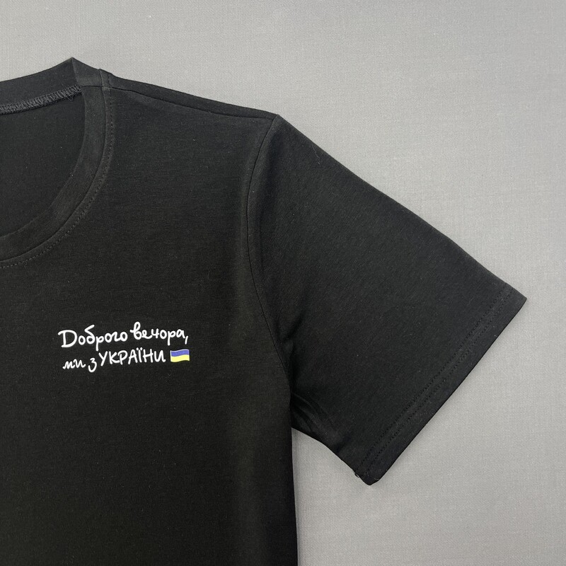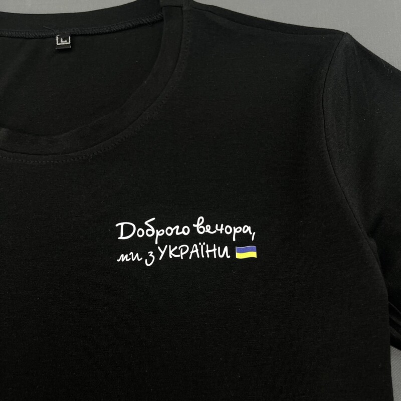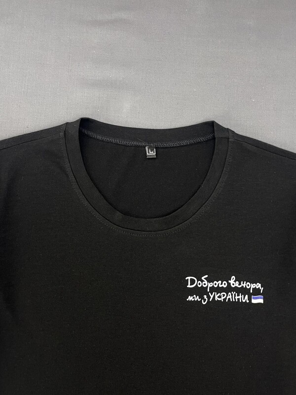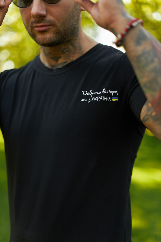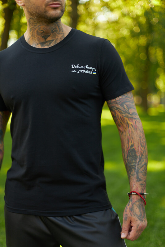 Чорна патріотична футболка від бренду Intruder з написом «Доброго вечора, ми з України» виготовлена з високоякісного турецького куліру, що складається з 90% бавовни та 10% еластану. Модель із круглим вирізом та короткими рукавами має прямий крій, який забезпечує комфорт та свободу рухів протягом усього дня. Принт нанесений методом накатки — він яскравий, не вигорає на сонці та не линяє при пранні, зберігаючи насиченість і чіткість зображення. Ця футболка ідеально підійде тим, хто цінує якість, комфорт і хоче виразити свою патріотичну позицію стильно і впевнено. 100% оригінал, відмінна фабрична якість.