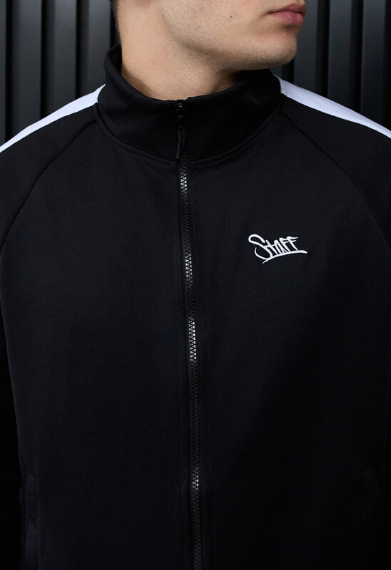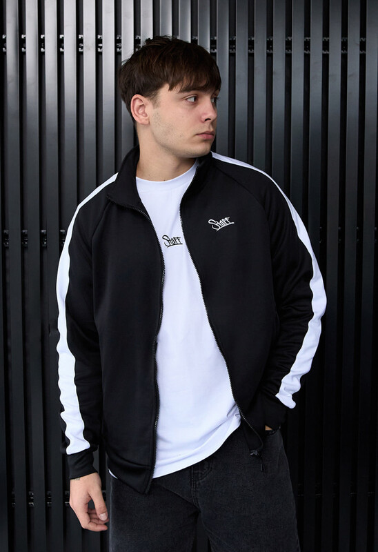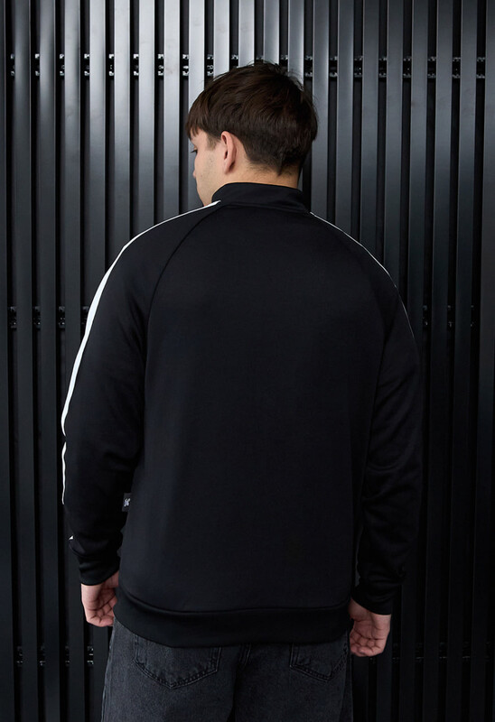 Олімпійка зі вставками-смужками вздовж рукавів і вишитим на грудях логотипом не сковує рухів та не мнеться, створюючи зручний образ на щодень.
