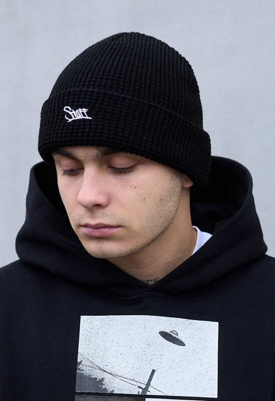 М’яка шапка щільної в'язки, доповнена широким відворотом і вишитим логотипом, чудово доповнить образ та захистить від вітру та холоду.