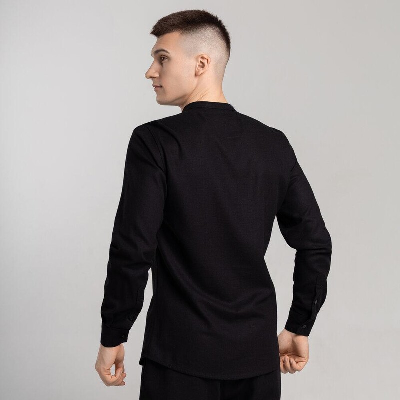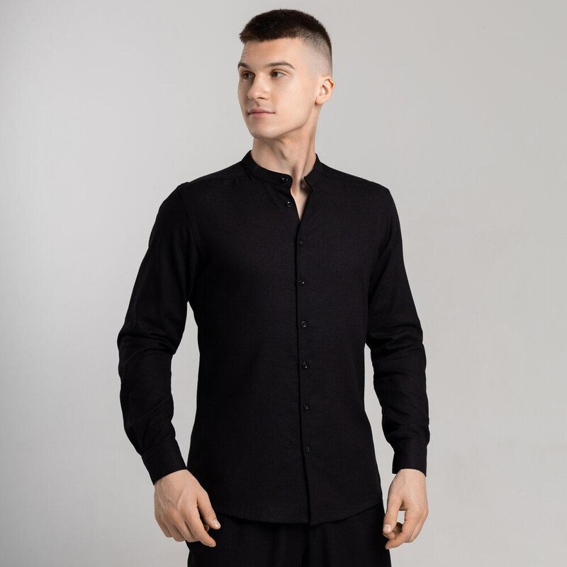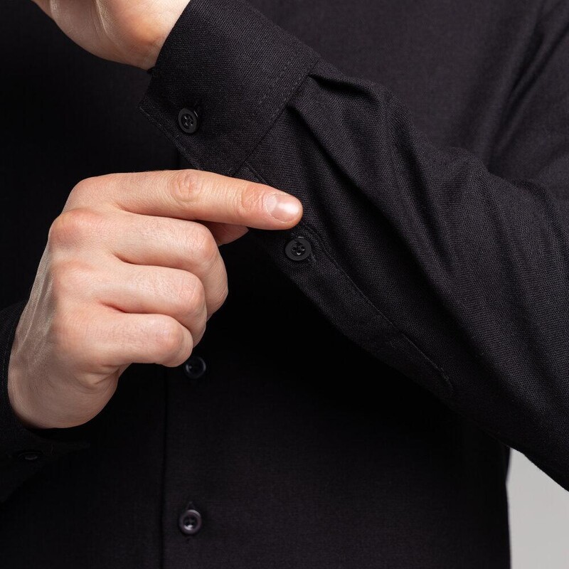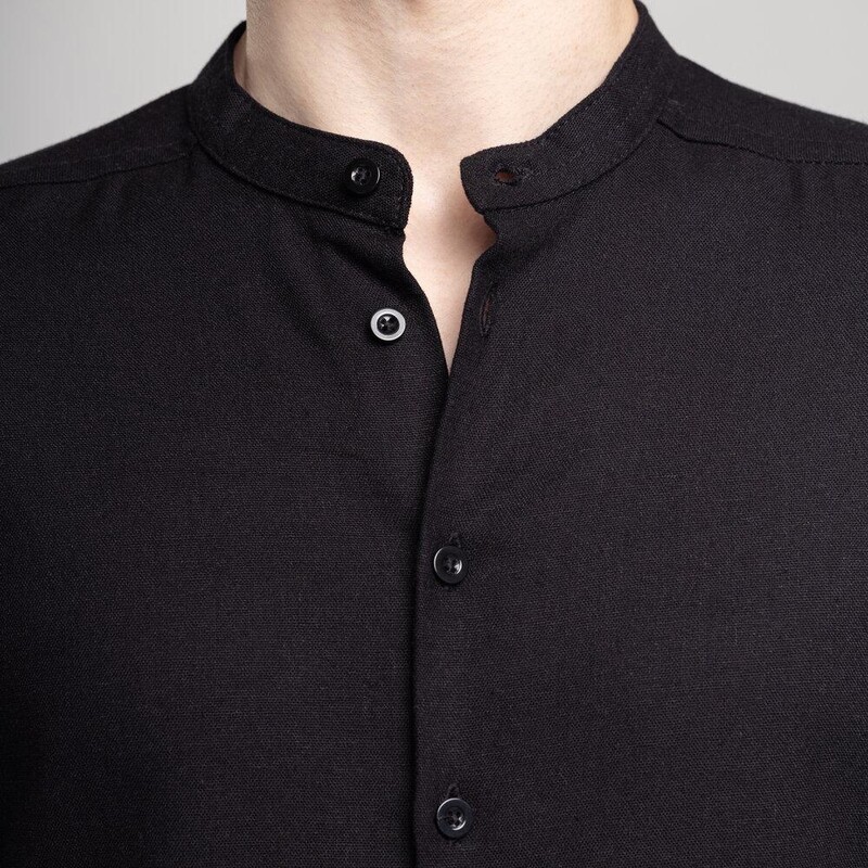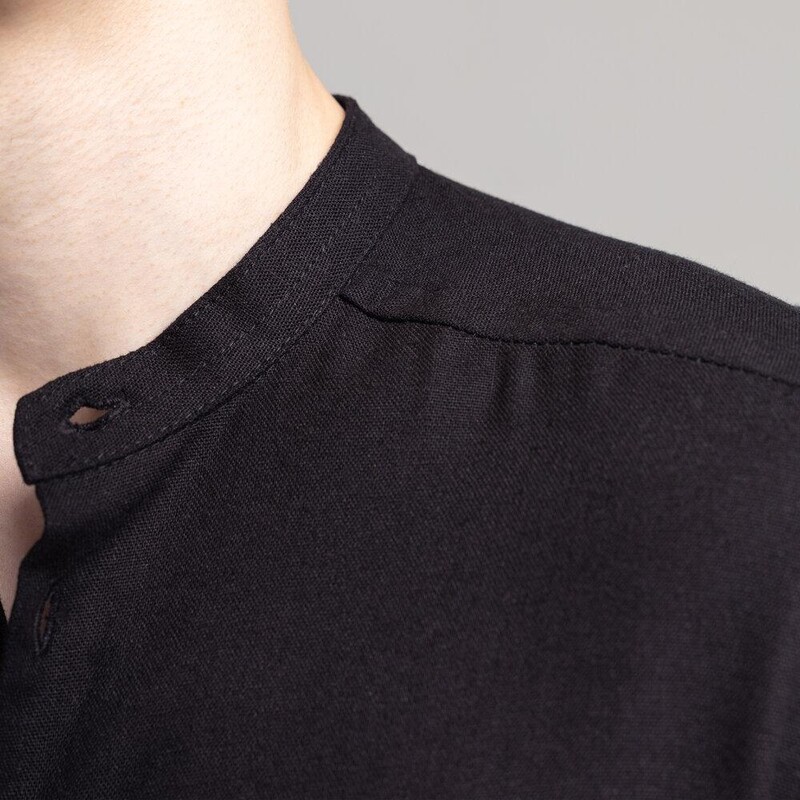 Нова чорна сорочка від Pobedov — втілення легкості, комфорту та стильної простоти. Виготовлена з якісного льону без стрейчу, вона забезпечує максимальний комфорт упродовж усього дня. Прямий крій створює вільний і універсальний силует, а комір-стійка підкреслює вашу стриману елегантність. Сорочка застібається на ґудзики — це практично і додає моделі охайності. Манжети також регулюються за допомогою ґудзиків, дозволяючи налаштувати посадку за власним бажанням. Глибокий чорний колір — це стриманість, універсальність і стиль поза модою. Ідеальний варіант на весну й літо, коли хочеться виглядати бездоганно й почуватися впевнено.