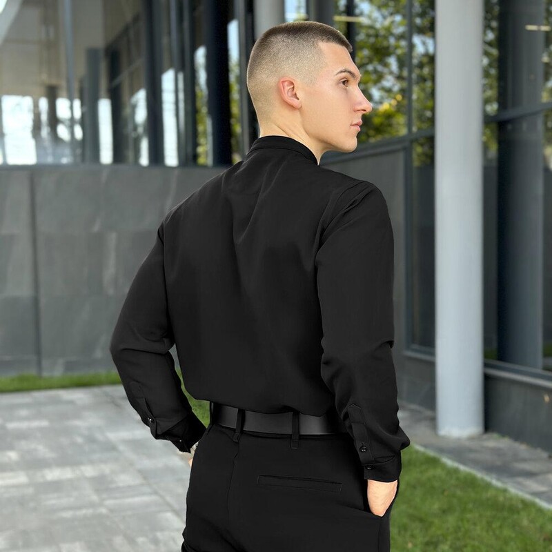 Чорна сорочка Pobedov Legend — це поєднання елегантності та щоденного комфорту у стилі смарт-кежуал. Костюмна тканина з сатиновим блиском забезпечує охайну посадку, а прямий крій дарує свободу рухів. Комір-стійка додає образу стриманості та стилю. Сорочка застібається на ґудзики, включно з манжетами, що дозволяє підлаштувати рукави під власну зручність. Чорний колір універсальний — пасує як для офісу, так і для вечірньої прогулянки. У комплекті — запасний ґудзик.