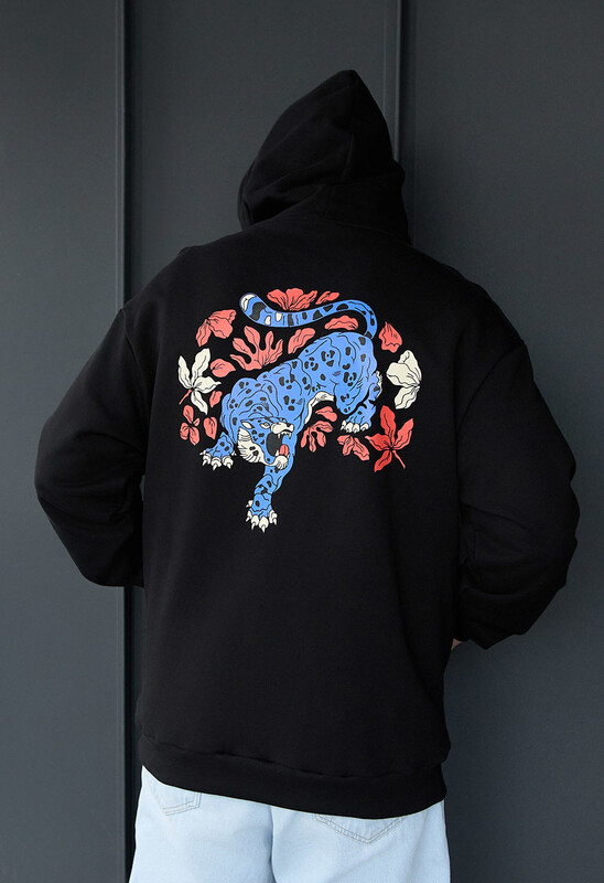 Фото - Чорне худі з яскравим тваринним принтом Staff tiger oversize - Men box
