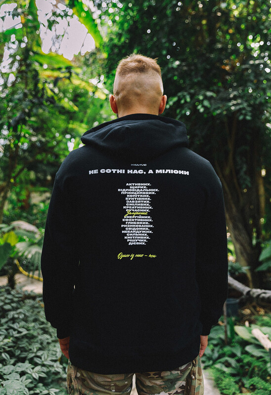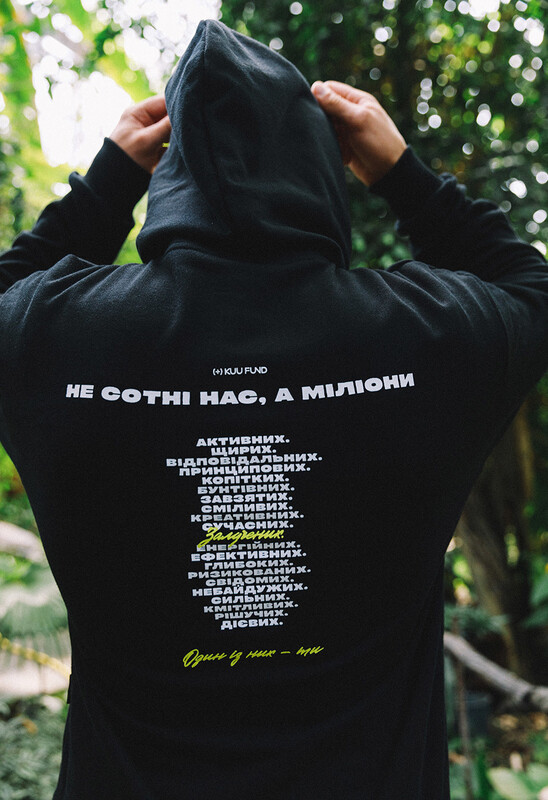 Спільна колекція худі STAFF X KUU.FUND несе у собі меседж об’єднання усіх навколо головної мети — допомоги нашим бійцям на фронті. Саме тому на худі — слова Тараса Шевченка «Не сотні нас, а мільйони».