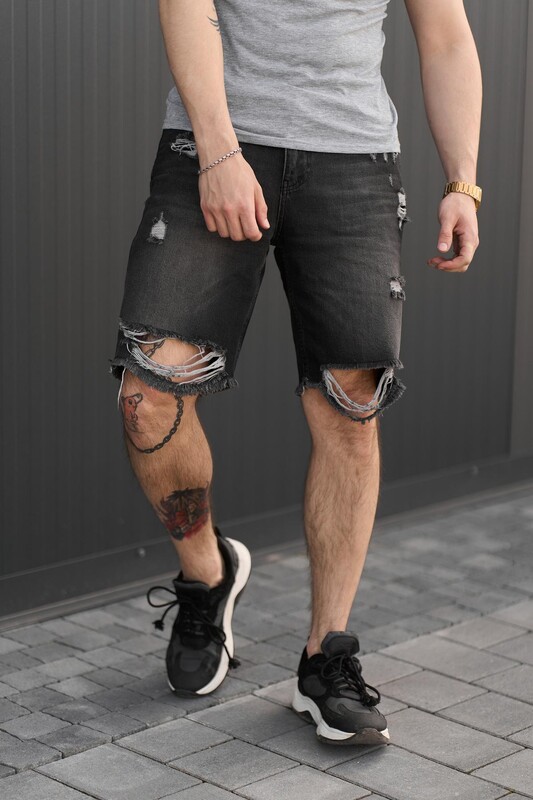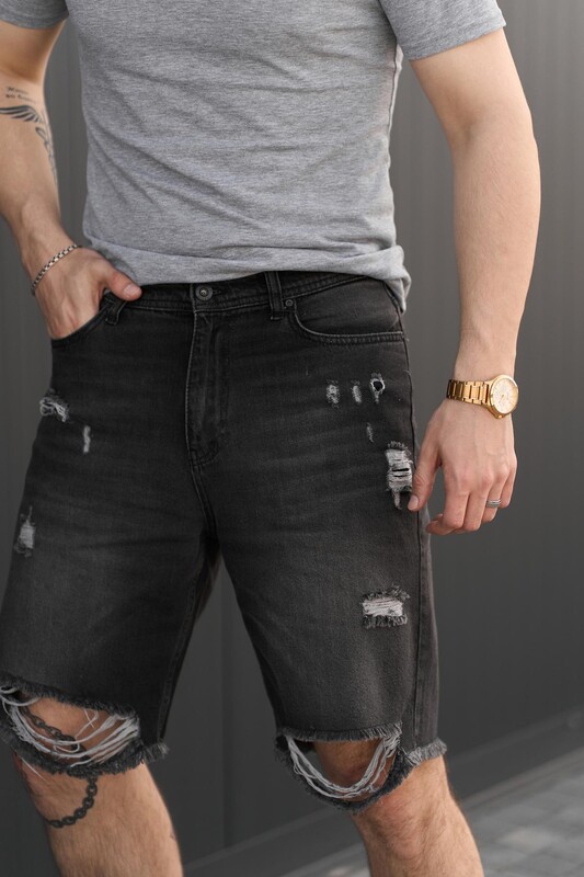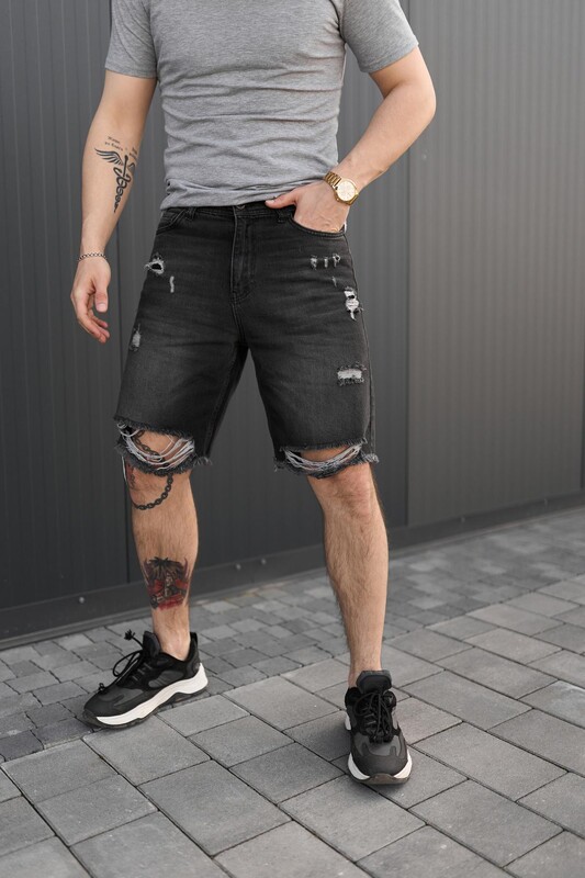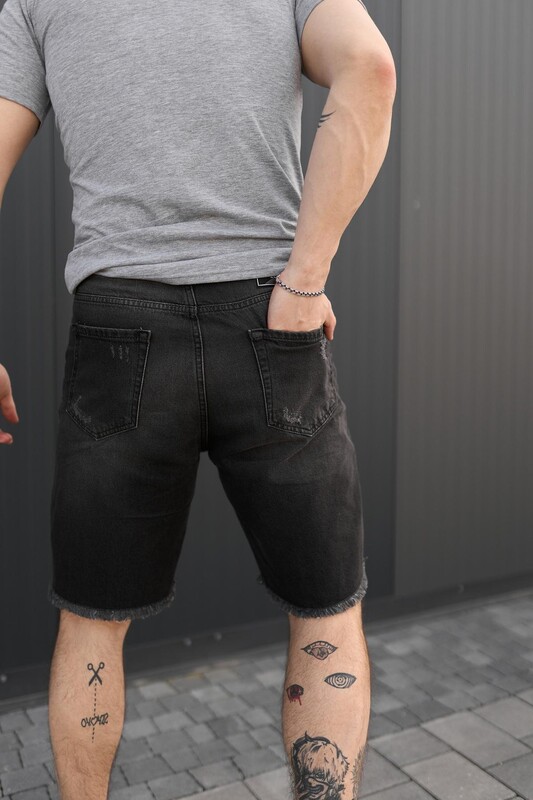 Фото - Чорні джинсові шорти Intruder зі світлими потертостями - Men box