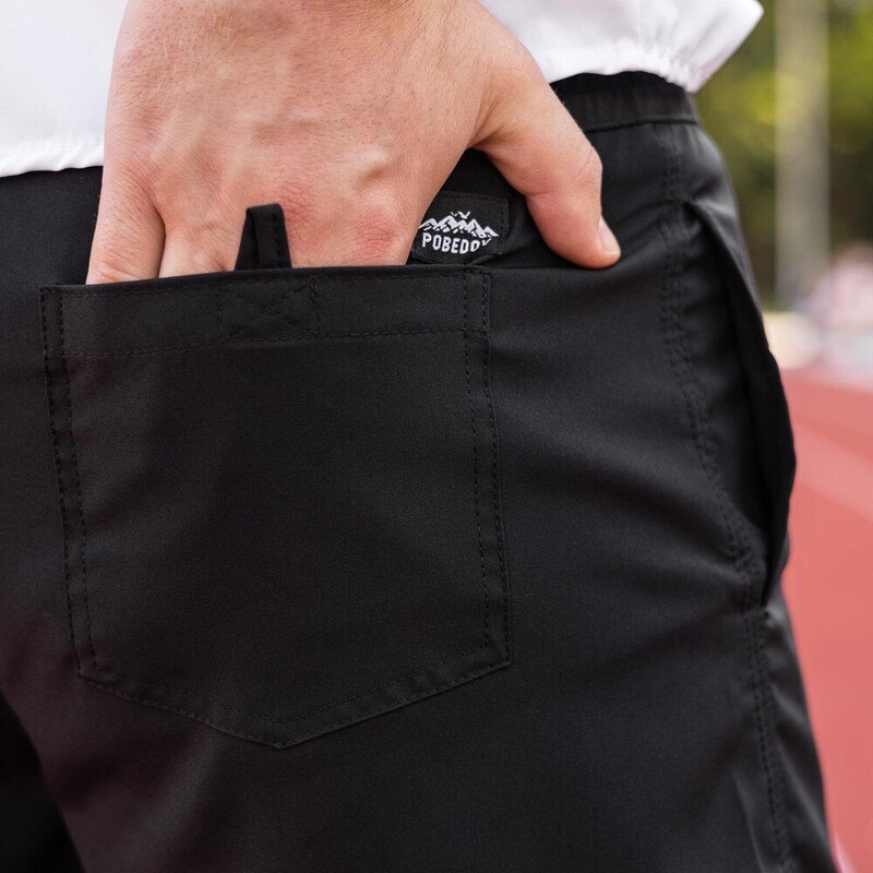 • Задня кишеня на подвійній липучці з фірмовою нашивкою Pobedov