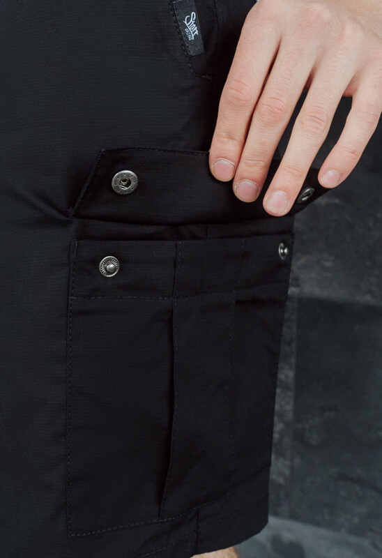 - чотири кишені: дві відкриті спереду і дві накладні, прикриті планкою на кнопках, з боків;