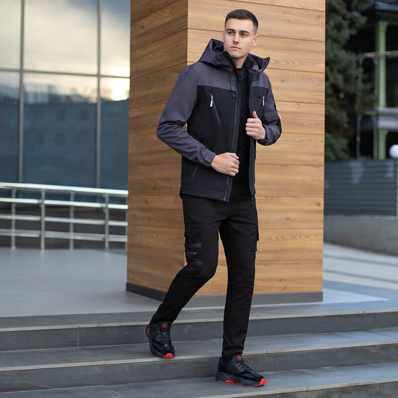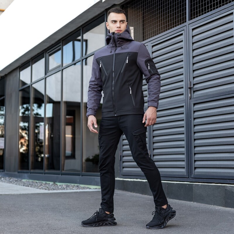 Фото - Демісезонна чоловіча куртка Staff mei soft shell dark gray & black - Men box