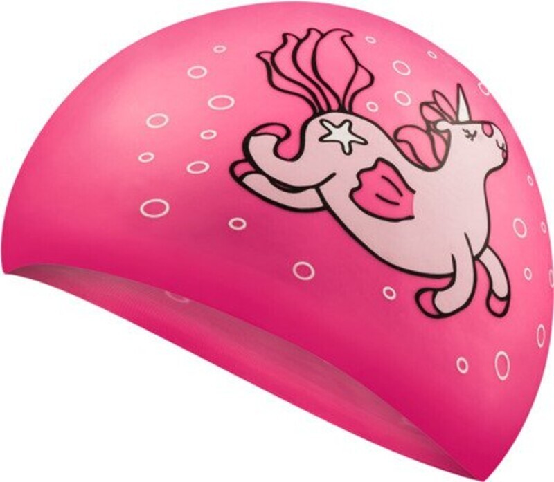 Ця чарівна шапочка зробить плавання казковим для маленьких плавців. Виготовлена з високоякісного силікону, стійкого до хлору, вона захищає волосся від вологи та хімічних речовин, зберігаючи комфорт під час тренувань. Рожевий дизайн із зображенням єдинорога привертає увагу і надихає дитину на нові досягнення в басейні. Еластичний матеріал м’яко облягає голову, не викликаючи подразнення, а анатомічна форма мінімізує опір води, забезпечуючи легке ковзання. Шапочка розроблена з урахуванням ніжної дитячої шкіри, гарантуючи зручність і безпеку.