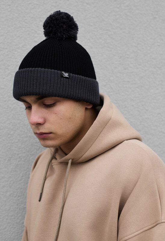 Шапка із щільної в'язки, широким відворотом та помпоном стане чудовим аксесуаром для створення крутого образу в холодну пору року.