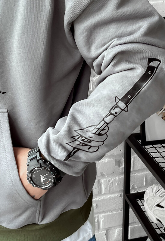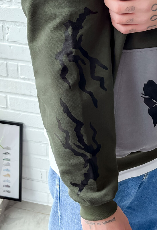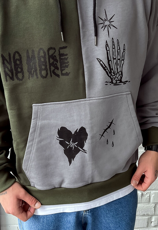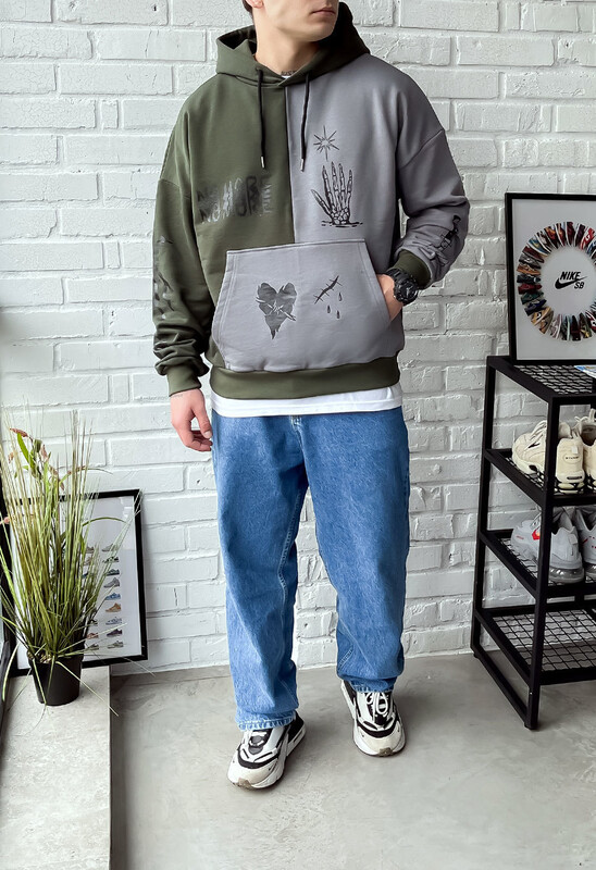 Oversize худі з тканини двох різних кольорів — вони чудово поєднуються між собою, створюючи ексклюзивний та зручний у повсякденному побуті образ.